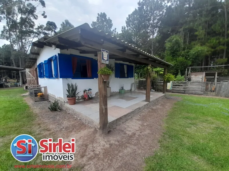 Sítio com 8.000m², com casa de alvenaria de dois dormitórios, sala, cozinha, banheiro, fogão campeiro, galpão com churrasqueira.